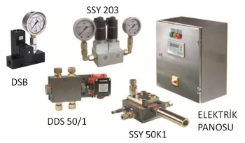 SSY 50: Hidrolik yön deiştirme valfi DDS 50/1: Sistem sonu basınç sivici (İki hatta birden bağlanabilir) DSB: Sistem sonu basınç sivici (tek hatta ayrı ayrı bağlanabilir) SSY 203:Elektromanyetik yön değiştirme valfi |